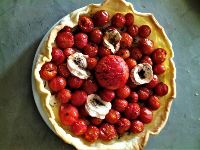 Tarte aux tomates cerise, miel et thym