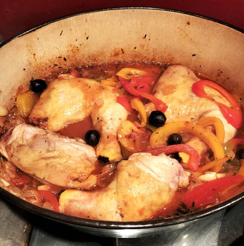 11 : Lorsque la sauce est onctueuse, assaisonner, remettre le poulet et finir de cuire 10 mn environ à feux doux