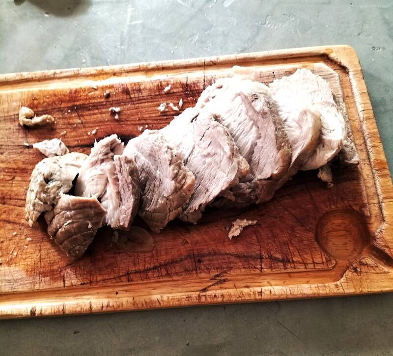 8 : Retirer la viande pour la découper et la présenter dans un plat de service.